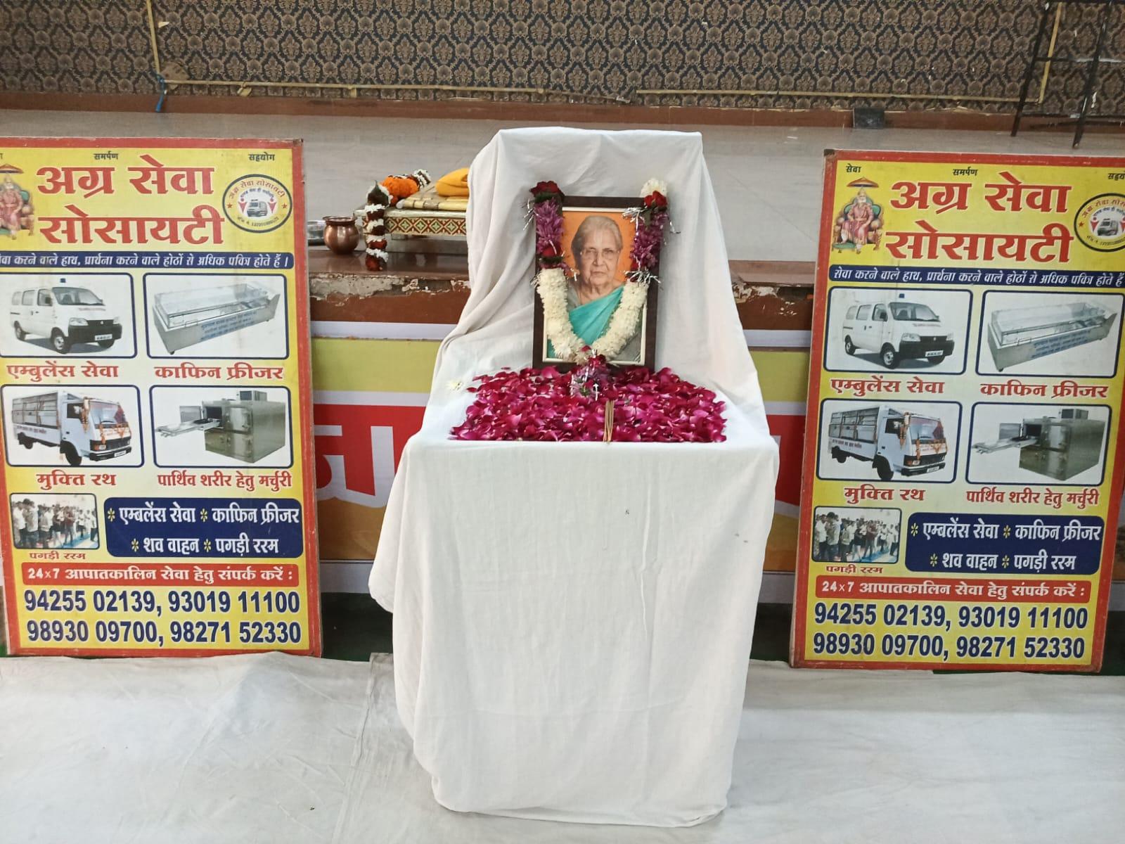 04/10/2025 - (875 वा श्रद्धांजलि बैठक व्यवस्था)आज दिनांक 4 अक्टूबर दिन शनिवार 2025 को स्व. श्रीमती चंदा देवी अग्रवाल जी कि पगड़ी सिंधु भवन देवेंद्र नगर रायपुर में थी अग्रसेवा परिवार द्वारा अग्रसेवा दी गयी अग्रसेव