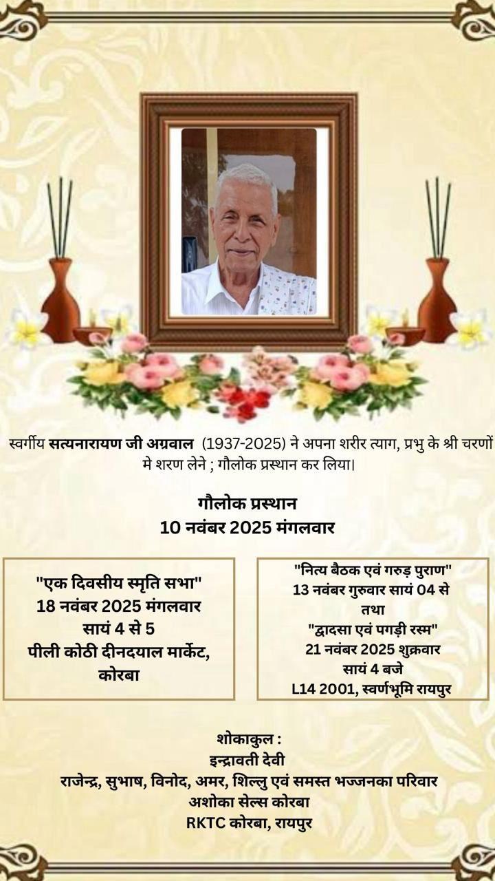 "द्वादसा एवं पगड़ी रस्म" 21 नवंबर 2025 शुक्रवार सायं 4 बजे L14 2001, स्वर्णभूमि रायपुर